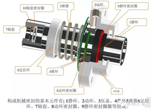componentes.a.Principais vedações: anel em movimento e anel estático.b.SEAL auxiliar:
